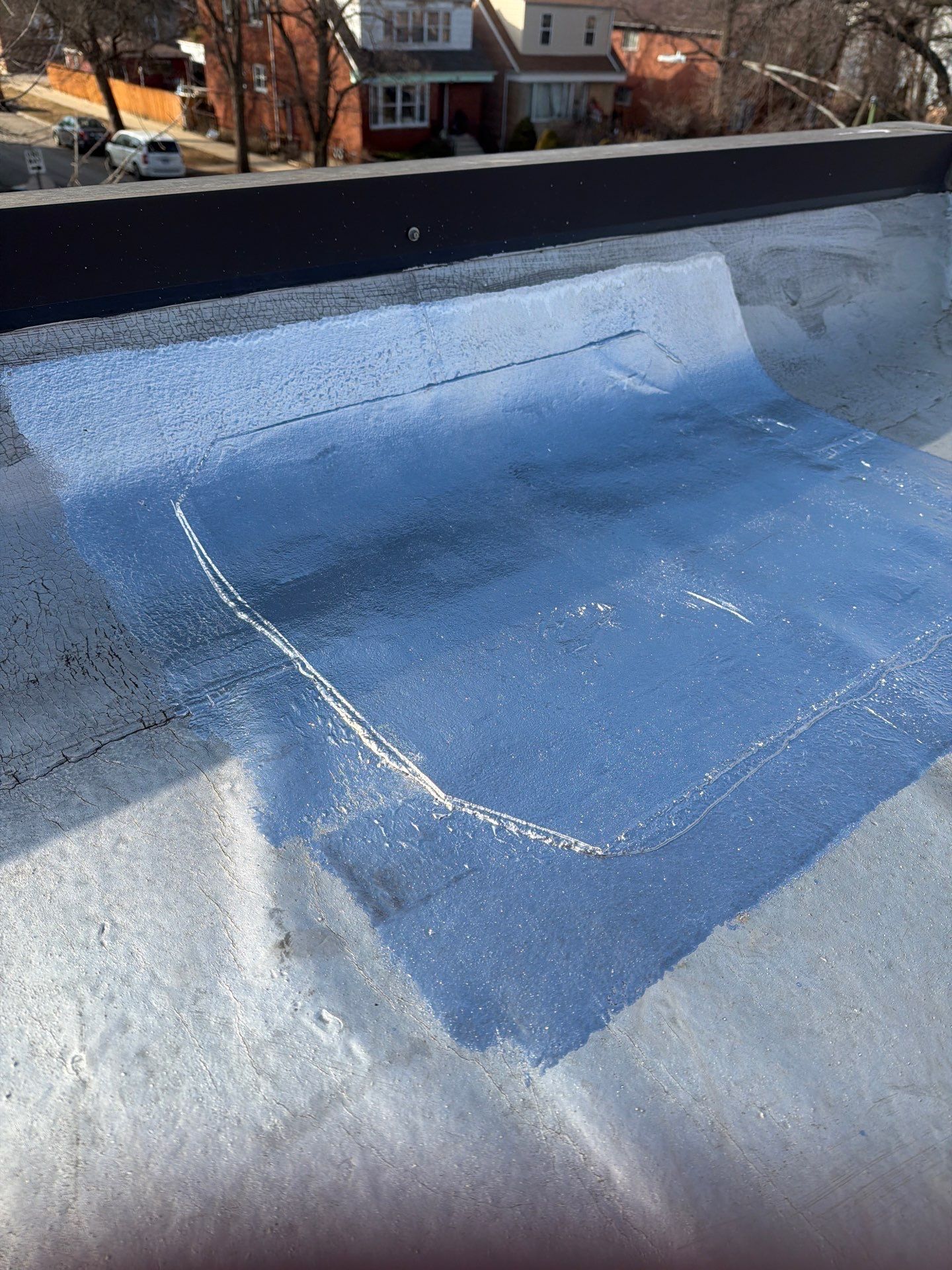 In many cases, we also touch up the repaired area with an aluminum roof coating, which helps provide additional protection against moisture and UV exposure while extending the life of the roof system.