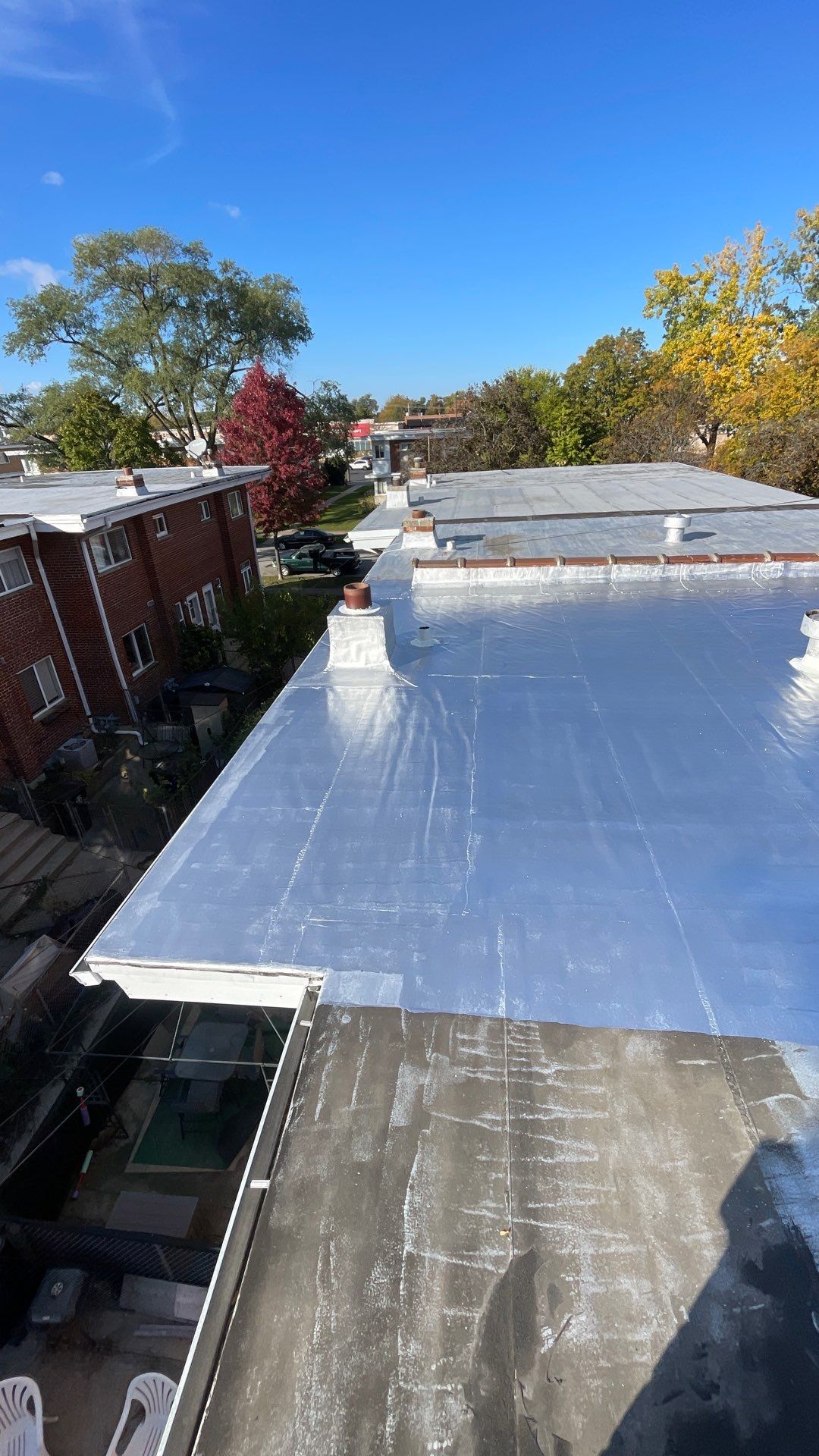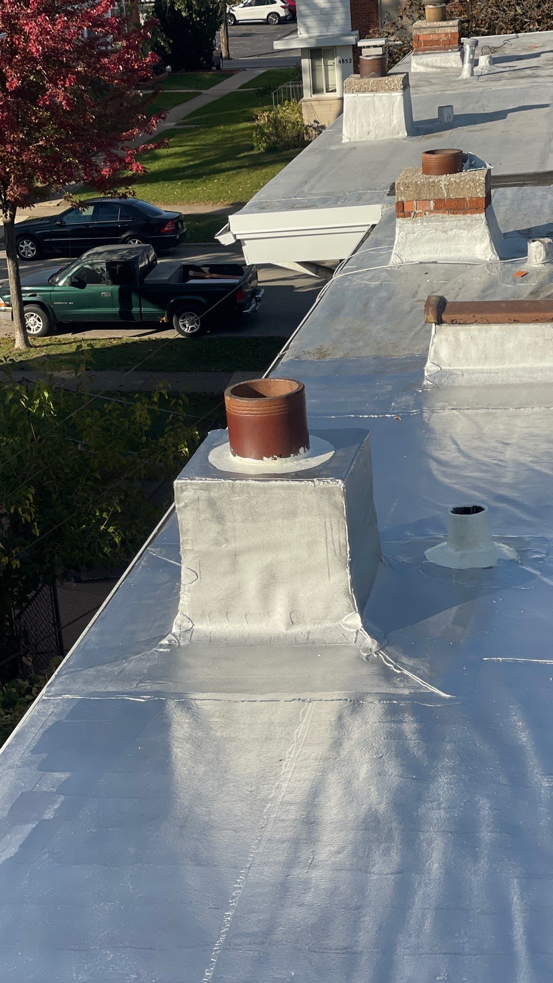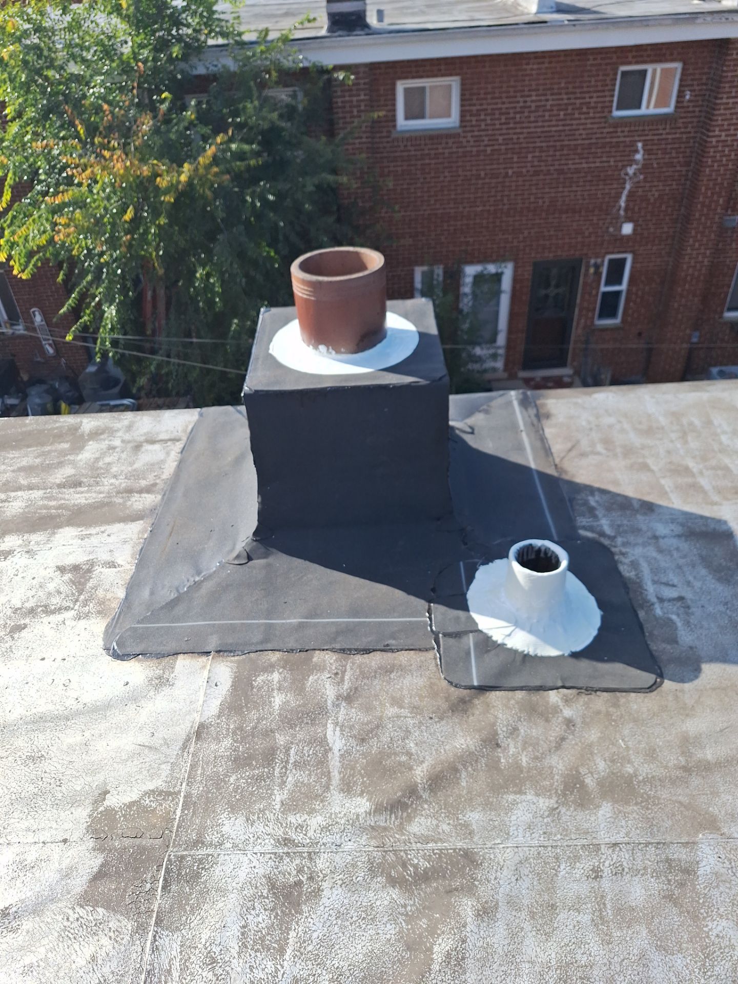 For every project, our team installs a new chimney flashing around the perimeter of the chimney, ensuring it seamlessly matches your existing roofing membrane—whether it’s TPO or smooth modified bitumen. Once the flashing is in place, we apply a commercial-grade sealant, Lucas 6000, to touch up and reinforce the edges, creating a fully watertight barrier that prevents water intrusion.