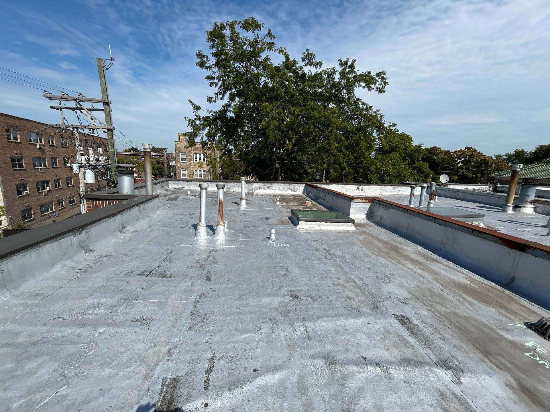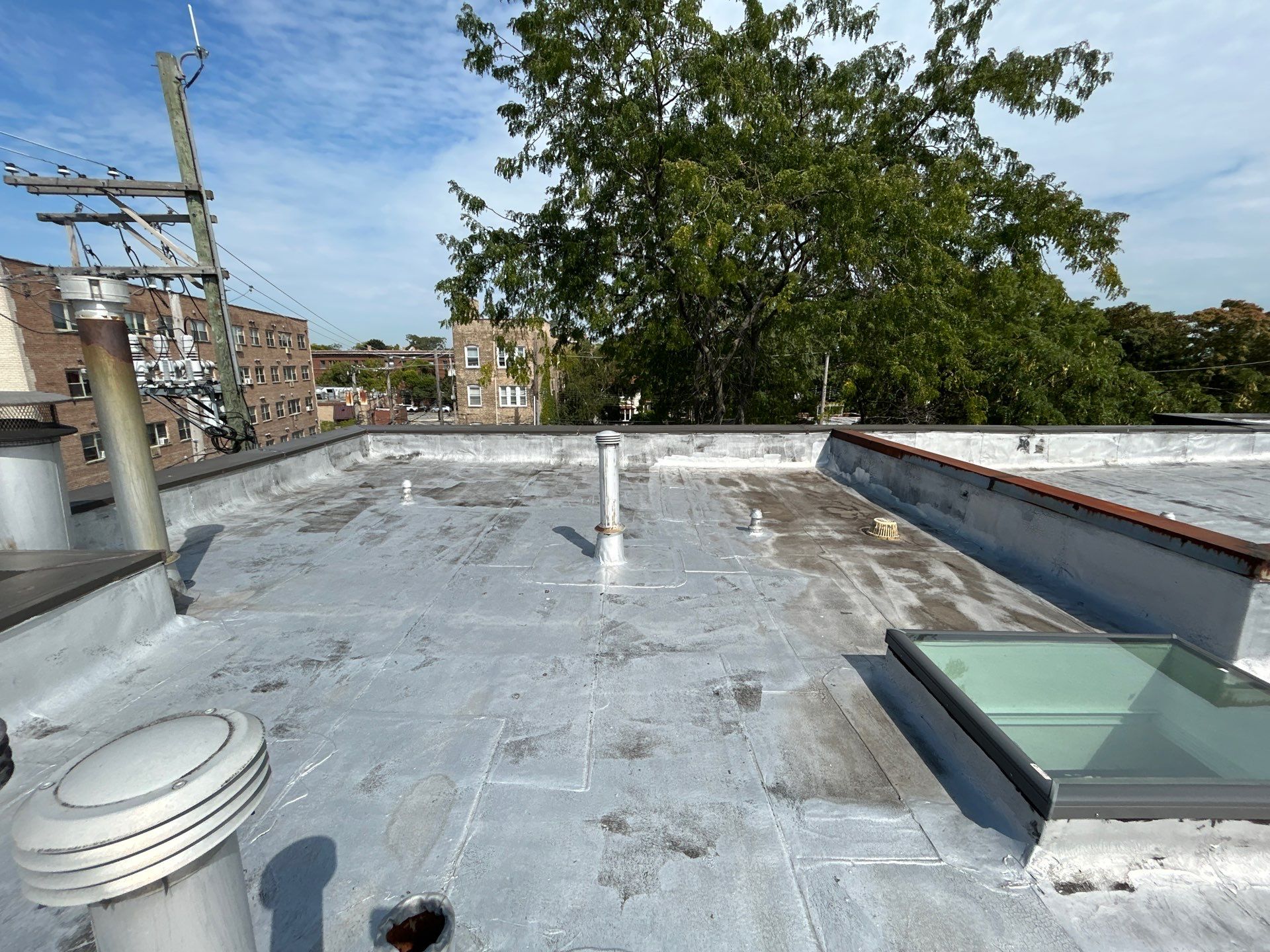Anchor Point Roofing in Chicago specializes in flat roof aluminum coating, a cost-effective solution to protect and extend the life of your roof. Aluminum coating is a reflective, protective layer applied to flat roofing surfaces that shields against UV rays, prevents water intrusion, and reduces heat absorption.