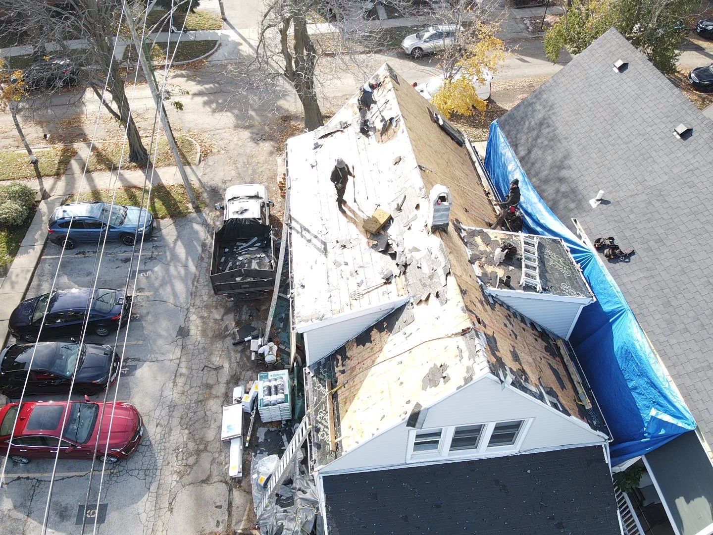 For a traditional pitched roof with asphalt shingles, most replacements take between one and three working days. This includes full tear-off, installation, and cleanup. The timeframe can shift depending on roof steepness, height, and access around the building. In Chicago, it is very common to have tight side yards, sometimes only 36 inches between homes. Limited access slows down tear-off, material handling, and cleanup, which can add time to the project.