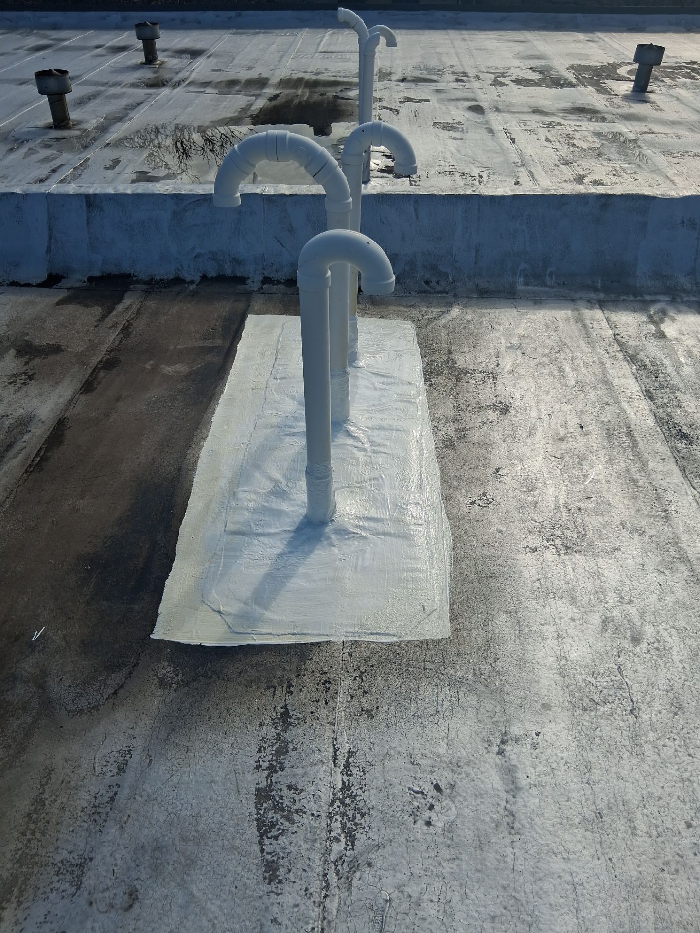 We apply Lucas 6000 around the base of PVC pipe stacks and other roof penetrations to ensure a tight, long-lasting seal. This added layer of protection is especially important in Chicago’s climate, where freeze-thaw cycles, heavy rain, and snow can quickly weaken unprotected flashing details and lead to leaks.