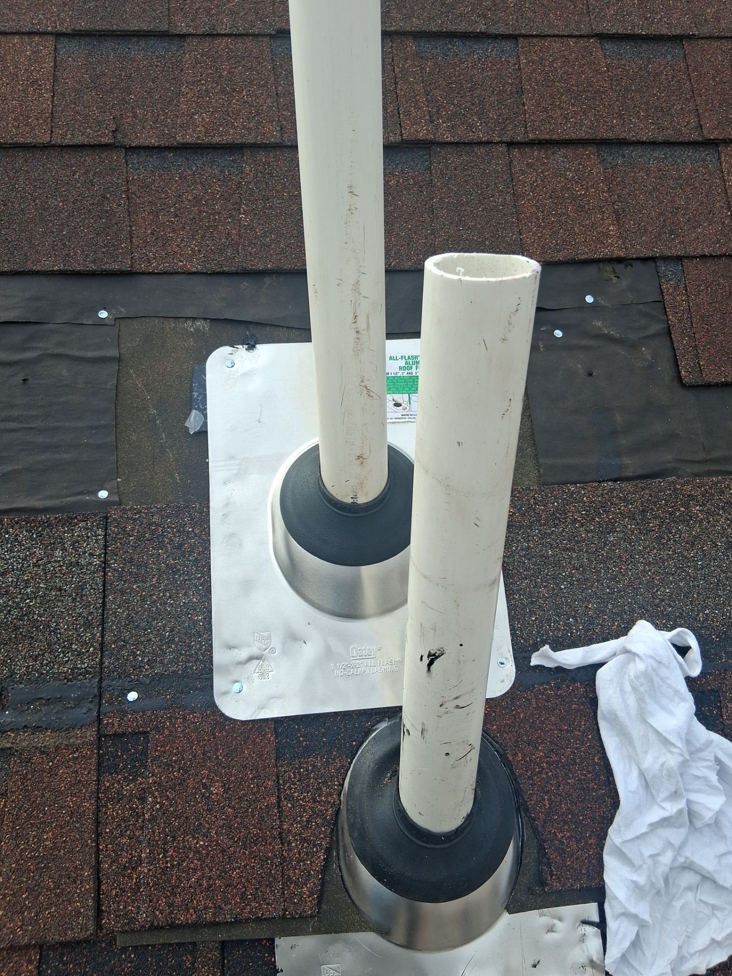 If you’re noticing water stains or leaks around your roof’s plumbing vent stacks, the issue may be a damaged boot around the waste stack. On a shingle roof, the boot is the rubber flashing that seals the area where the stack penetrates the roof. Over time, these boots can crack, shrink, or become worn, allowing water to seep in and cause leaks inside your home.