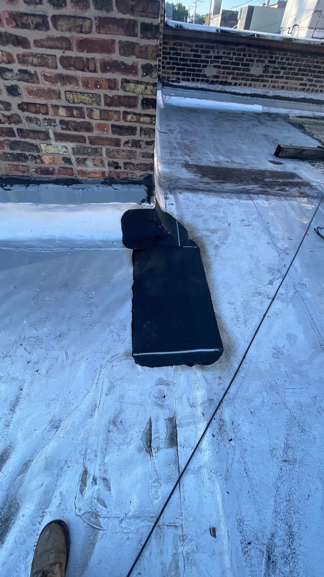 For smooth modified bitumen roofs, we also apply an aluminum coating over the repaired section to enhance durability, protect against UV rays, and ensure a clean, uniform finish.