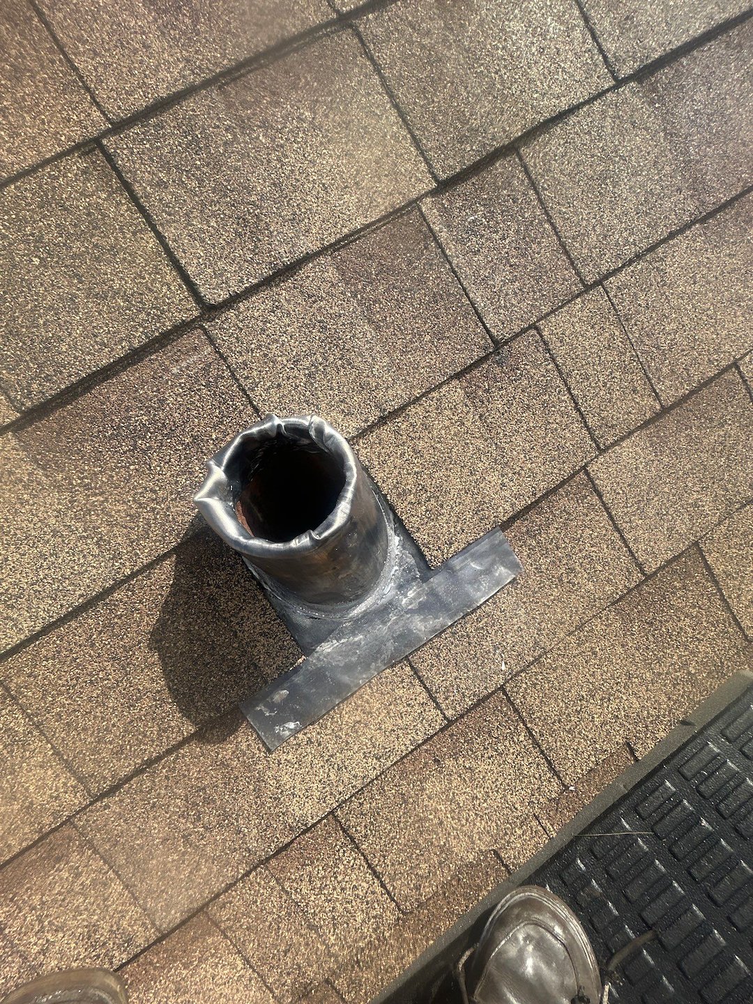 For this project, our team carefully removed the damaged boot and prepped the surrounding area with new synthetic felt for added protection. We then installed a lead boot, ensuring a durable, long-lasting seal around the pipe. Finally, new shingles were installed to match the existing roof as closely as possible, maintaining both function and appearance.