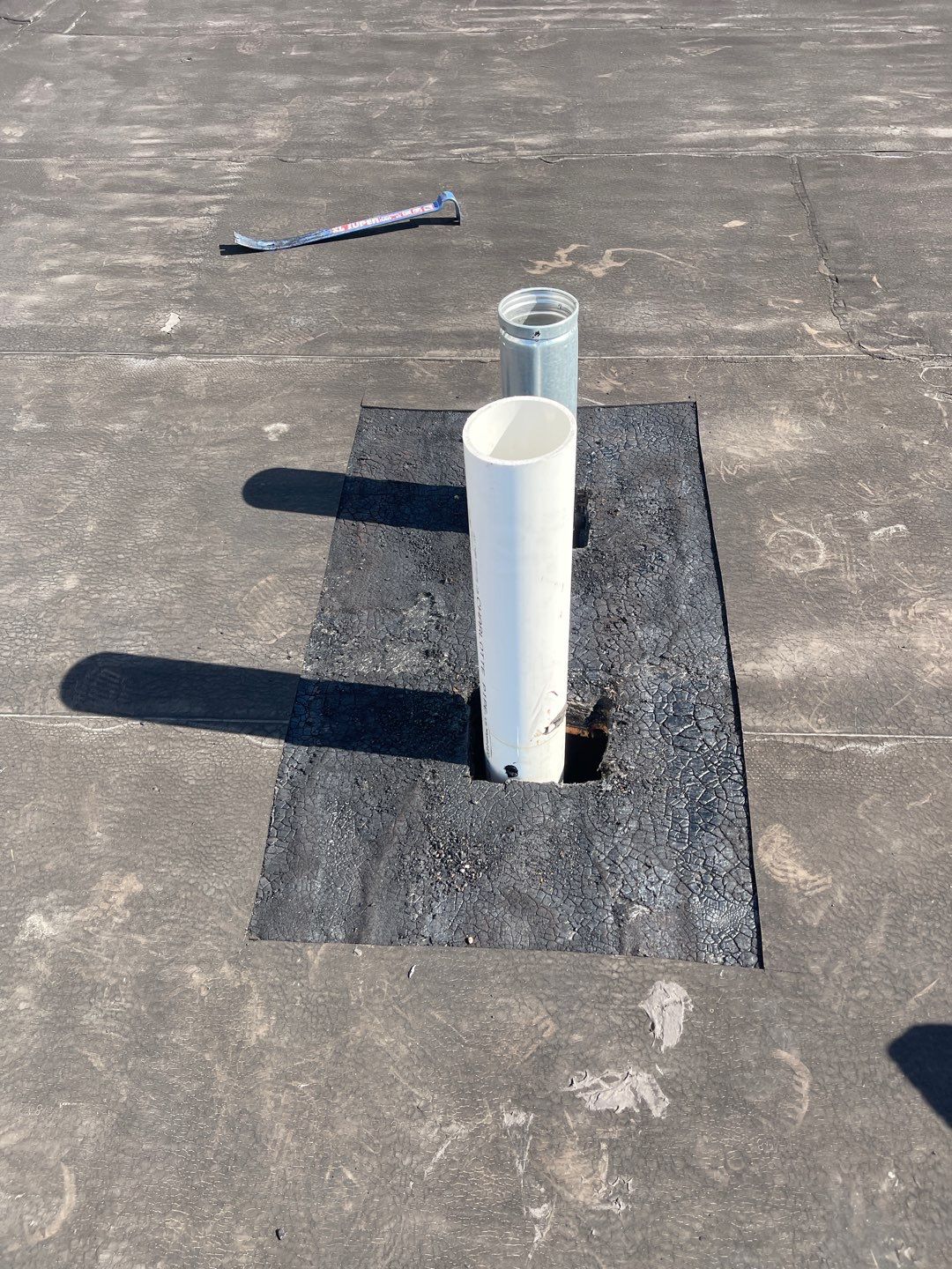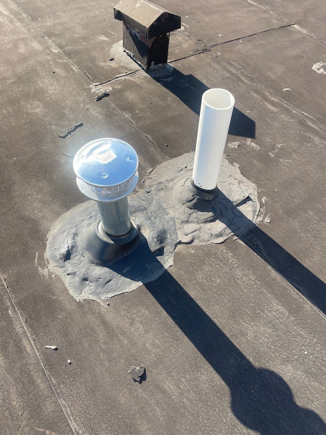 At Anchor Point Roofing, we frequently address leaks caused by failing flashing or improper boot installations around these penetrations. As part of our repair process, we remove any deteriorated materials and provide and install new modified bitumen flashing or lead boots as needed. We also seal the repaired area with a commercial-grade aluminum coating to reinforce protection and blend with the existing roof system.