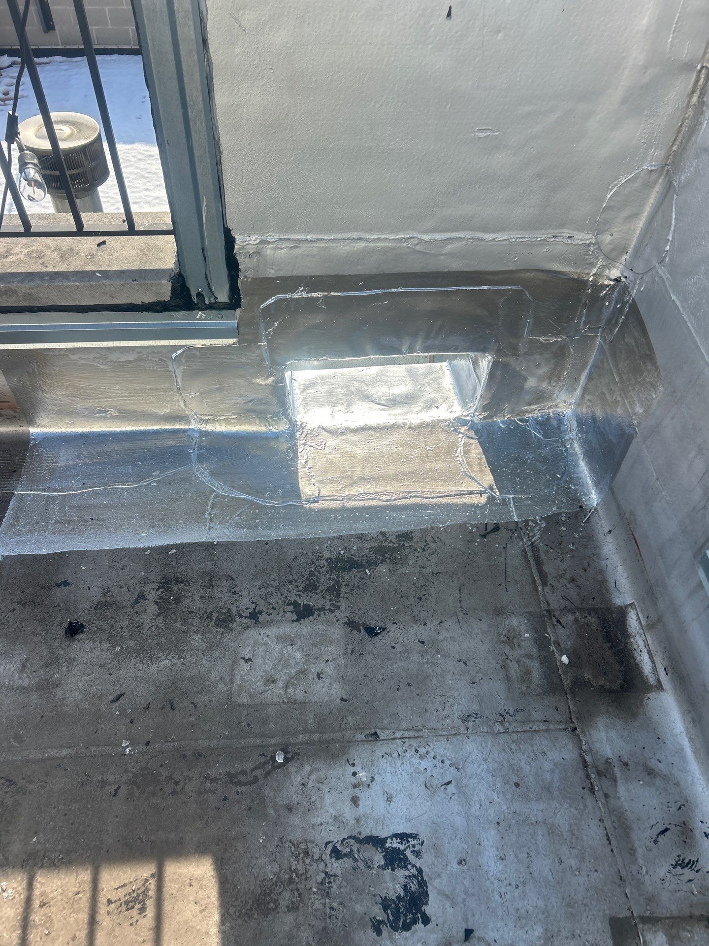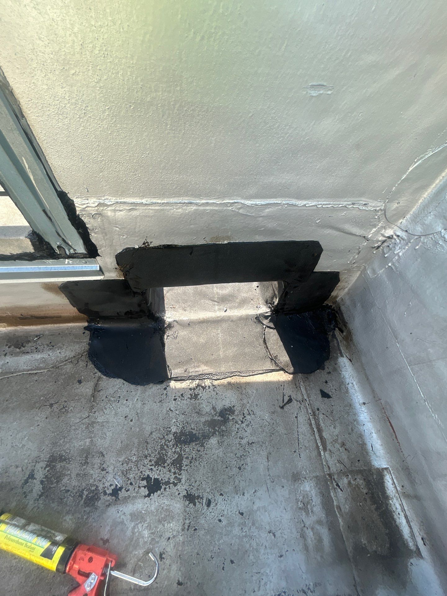 Our professional team will remove the damaged scupper flashing and carefully prime the scupper box to prepare it for repair. Depending on your roof type, we will install a new membrane around the scupper area, whether it’s granulated membrane, smooth modified bitumen, or TPO. For smooth modified bitumen membranes, we also apply a protective aluminum coating to enhance durability and weather resistance.